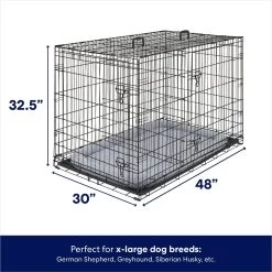 Frisco Heavy Duty Enhanced Lock Sliding Double Door Fold & Carry Wire Dog Crate & Mat Kit, 54 Inch
