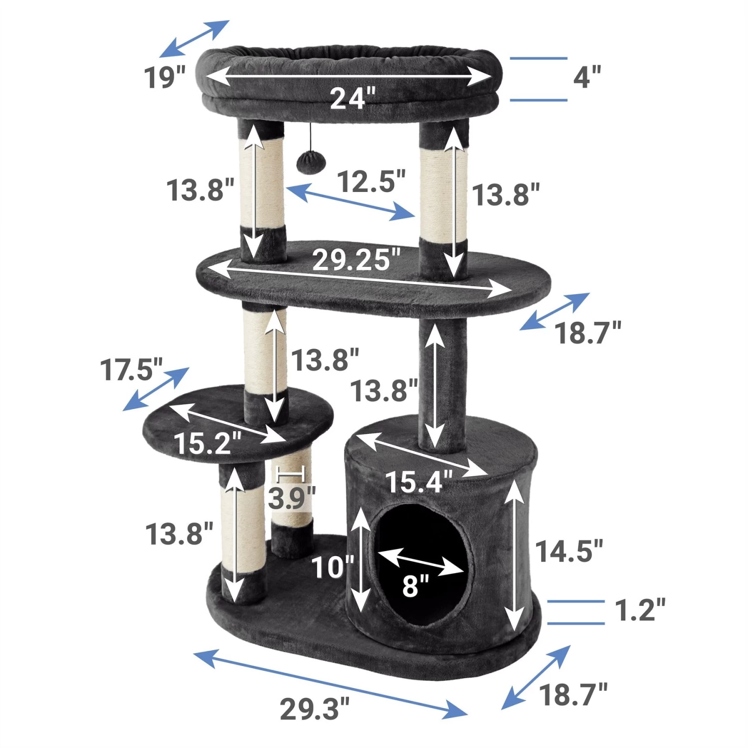 - 48.25-inch design with lots of comfortable spots to scratch, play, nap, relax and perch.