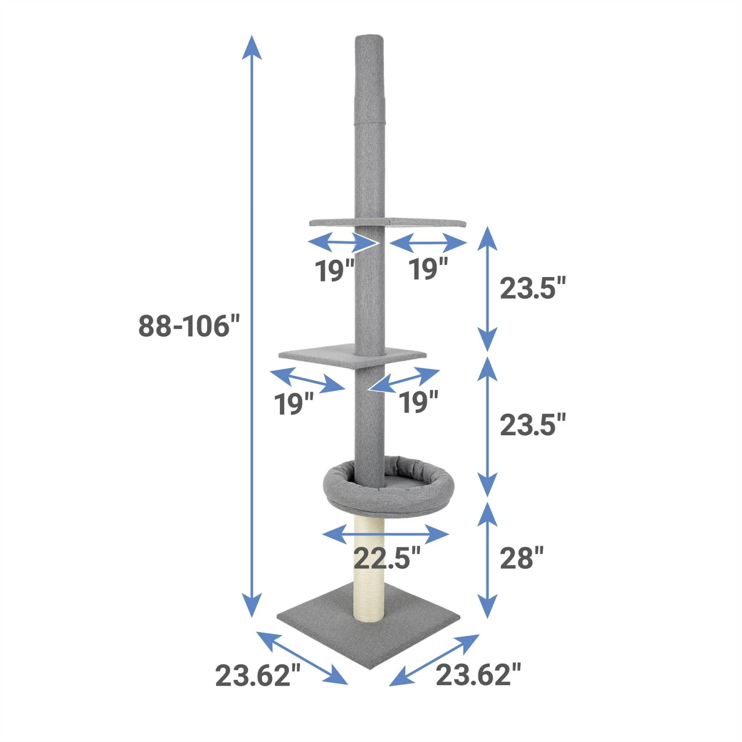 Frisco 88 To 106-in 3 Level Floor To Ceiling Heavy Duty Cat Tower