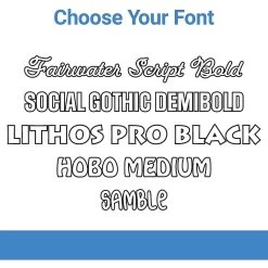 - Personalizable design lets you add a line of text up to 13 characters long in one of five fonts.