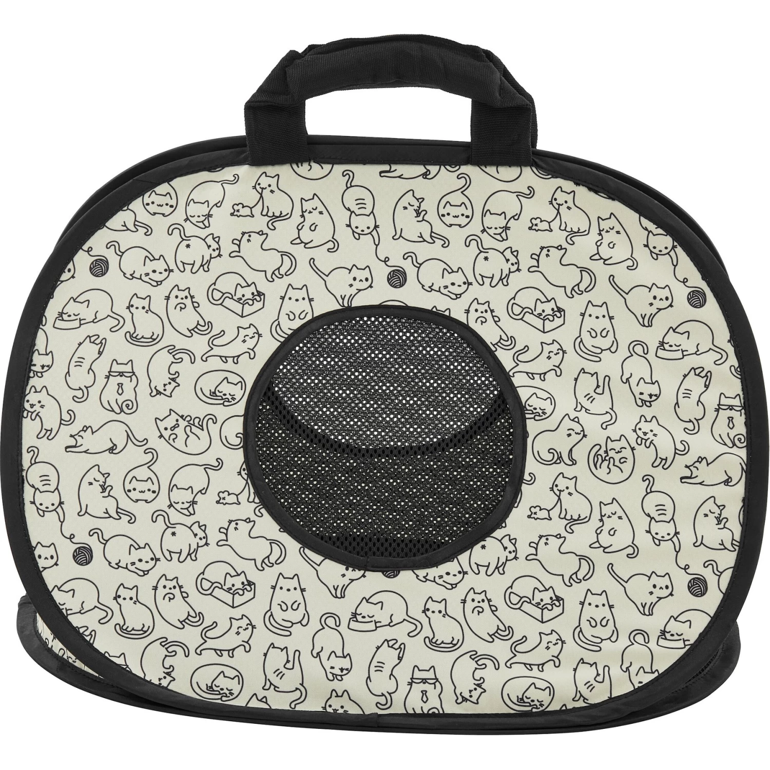 - Chic, stylish cat carrier bag available in an animal sketch pattern or black-and-white plaid.