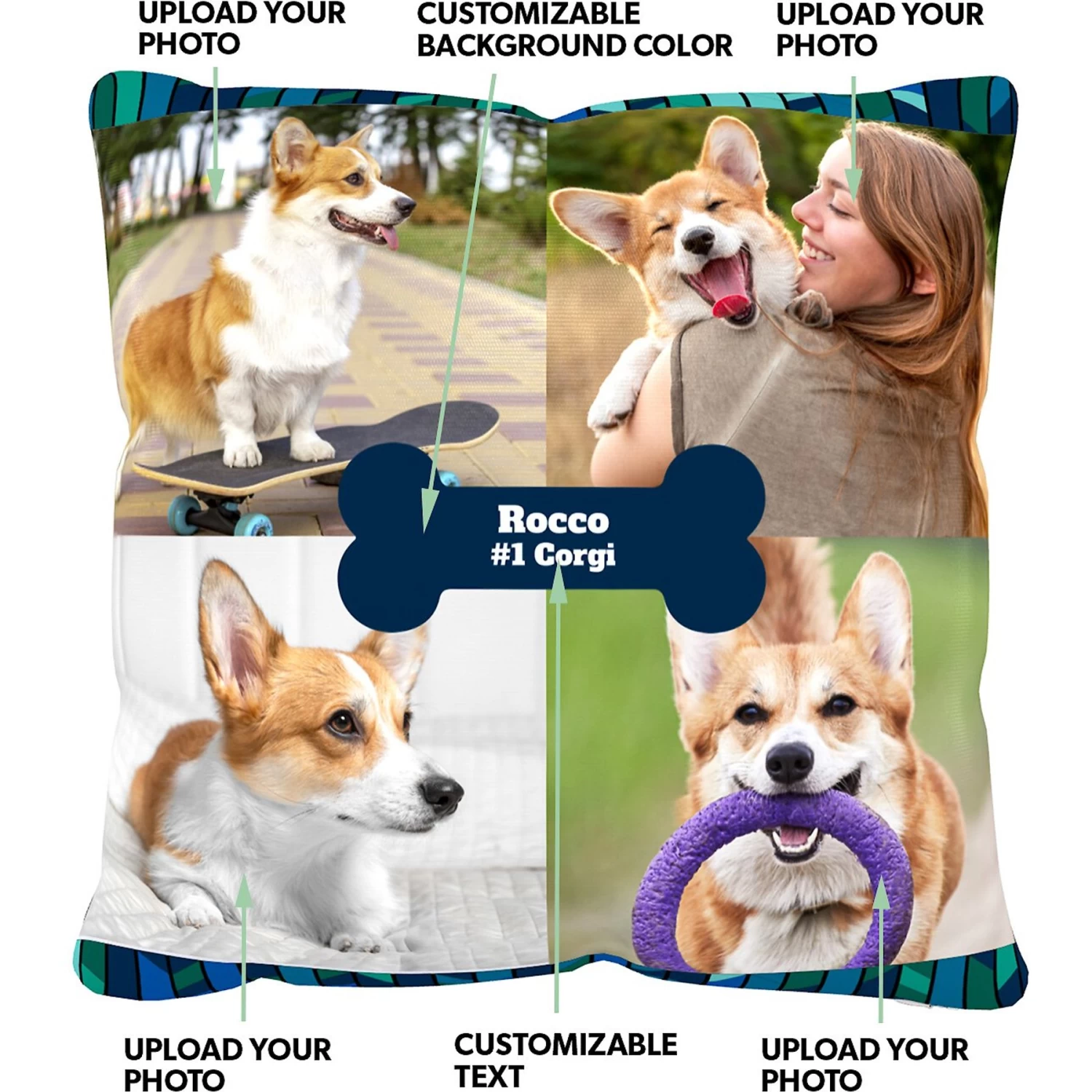 - Fluffy, comfy throw pillow lets you make your pet’s cute face a part of your home décor.