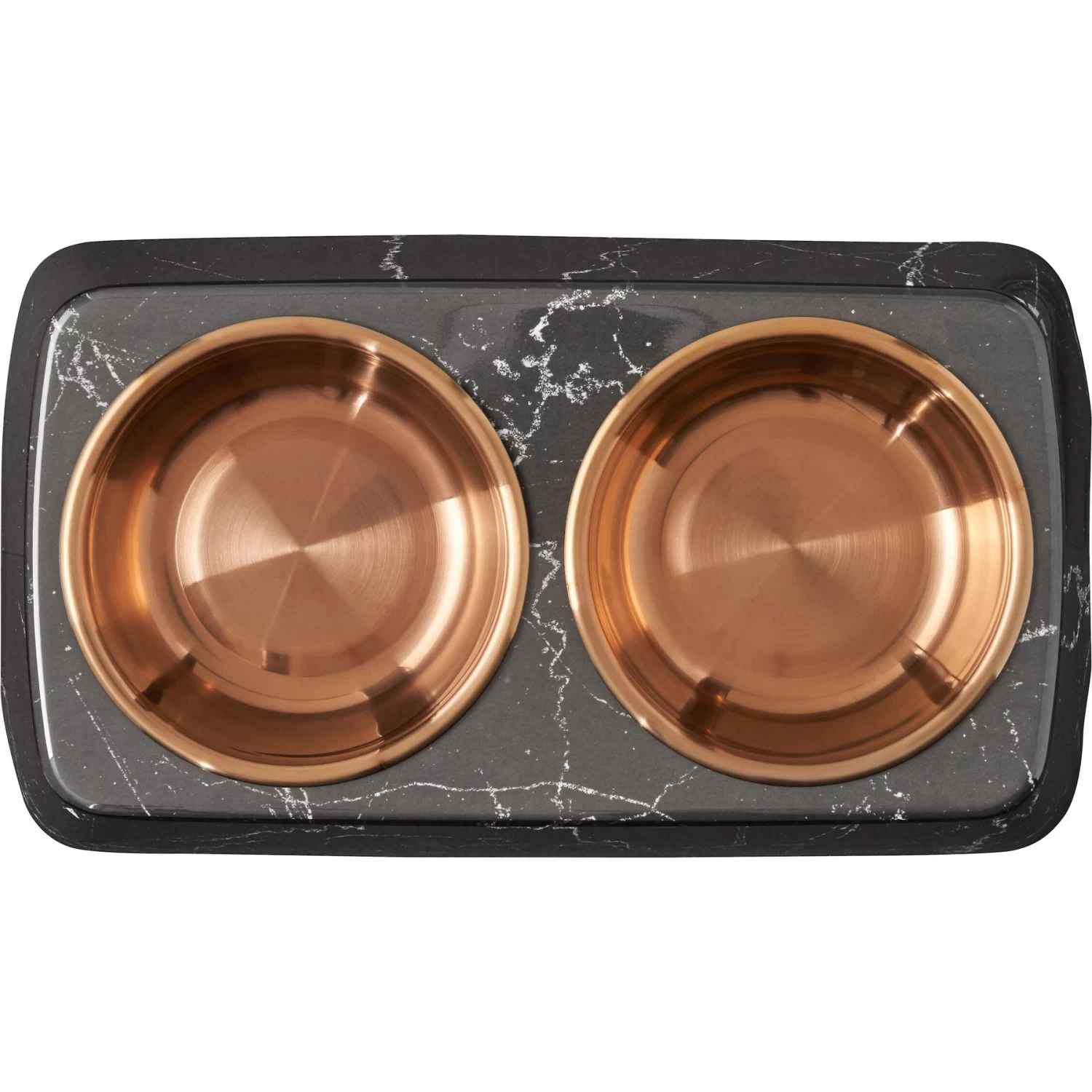 Frisco Copper Stainless Steel Double Dog & Cat Bowls With Black Marble Stand