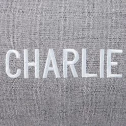 - Choose from white or light gray thread for the embroidery, and flair script or block caps font.