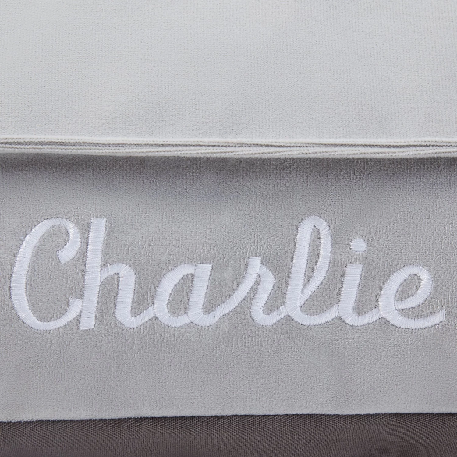 - Back bolster-style bed, customizable with up to 10 1-inch characters, perfect for their name.
