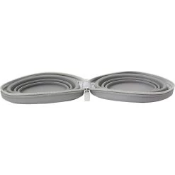 - One set of two collapsible travel bowls that fold up and zipper shut.